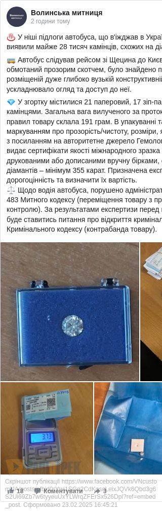 Як повідомили у Волинській митниці, автобус прямував до Києва. Орієнтовна маса вилучених коштовностей — щонайменше 355 каратів. Підтвердити дорогоцінність каміння має експертиза.