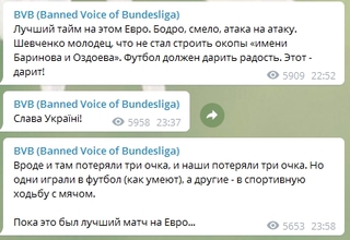 У своєму Telegram-каналі коментатор написав гасло «Слава Україні!» і відзначив сміливість Андрія Шевченка та його підопічних, які не стали «закриватися» біля своїх воріт. Він заявив, що збірні Росії та України програли, але показали абсолютно різну гру.