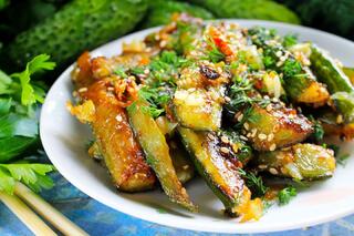 Огірки по текстурі дещо схожі на кабачки, а соус, в якому вони готувалися, насичений. Вони водночас і кислі, і солодкі, і гострі, і пряні. Це дуже смачно і незвичайно.