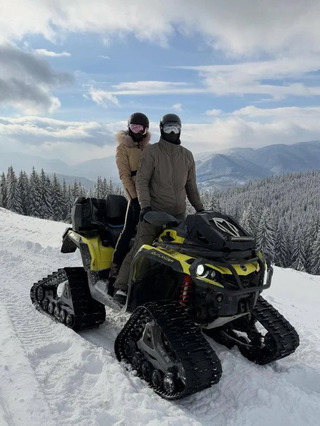 Не обходиться й без активного дозвілля. Леся Нікітюк разом із коханим уже встигла покататися на снігоходах серед гір. Телеведуча опублікувала романтичний знімок, на якому Дмитро керує транспортом, а вона позує позаду, насолоджуючись зимовою атмосферою Карпат.