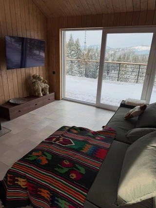 У соцмережах вона показала атмосферні моменти з поїздки до засніжених Карпат, де родина оселилася в затишному дерев’яному будинку з панорамними вікнами та краєвидами на гори й ліс.