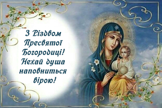 Сердечні вітання в Різдво Пресвятої Богородиці! Нехай на шляху в житті зустрічається тільки все найкраще і приємне, і тільки добрі люди. Нехай твої помисли залишаються світлими й добрими будуть наміри! І нехай Богородиця захищає тебе від всіх неприємностей!