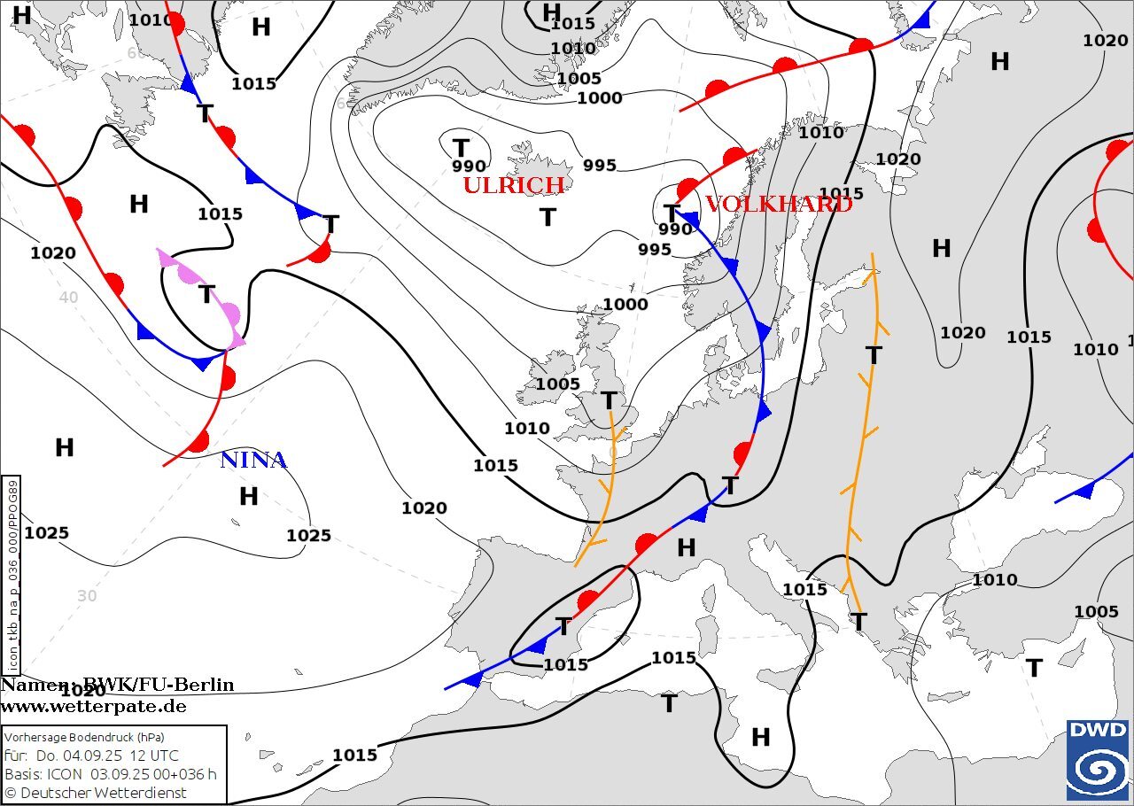 Невеликі грозові дощі можливі лише на крайньому заході країни. Вони пов’язані з так званою «лінією сходження» — зоною, де зустрічаються повітряні потоки й утворюється конвекція, що провокує зливи та грози.