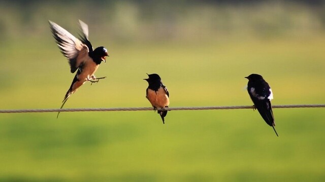 Птахи часто сидять на лініях електропередач у різних куточках світу — поодинці або цілими зграями, ніби це їхнє звичне місце для відпочинку.