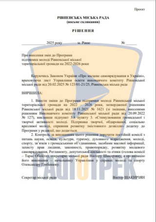 Цю ініціативу ще мають підтримати депутати міської ради, зокрема погодити внесення змін до Програми підтримки молоді у Рівному.