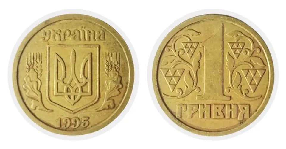 Цінуються і 1-гривневі монети 1995 різновиду 1БАг. Їх можна продати за ціною від 7 000 до 9 000 грн. Такі монети також відрізняє гладкий гурт.