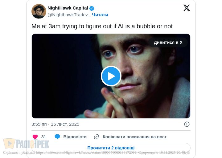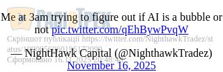 Так, цей спад — ранній сигнал можливого розриву AI-бульбашки, але не повний крах. Ось чому: