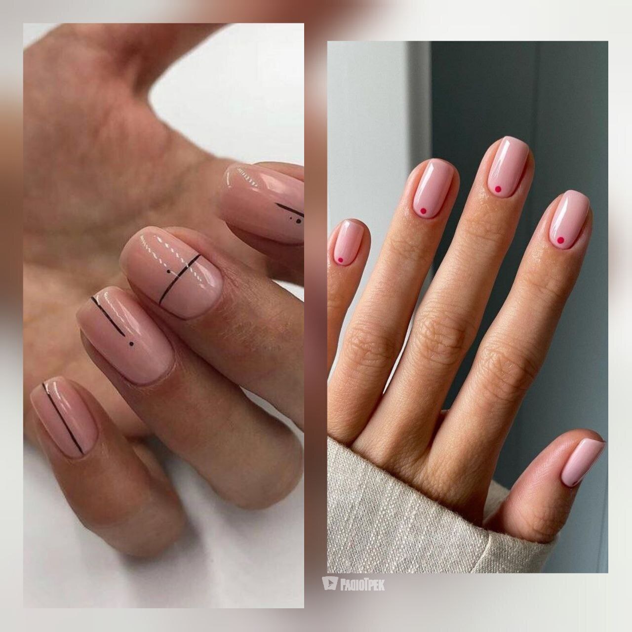 - Мінімум декору — інколи достатньо лише одного невеликого елементу, як-от точка, лінія або невеликий геометричний візерунок, щоб манікюр виглядав стильно.