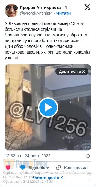 Стрілянина сталася на подвір'ї 13 школи у Львові.