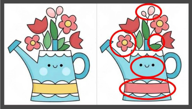 У цьому завданні вам потрібно знайти 5 відмінностей між двома ілюстраціями, на яких зображені вази з квітами. На виконання завдання у вас є лише 20 секунд.