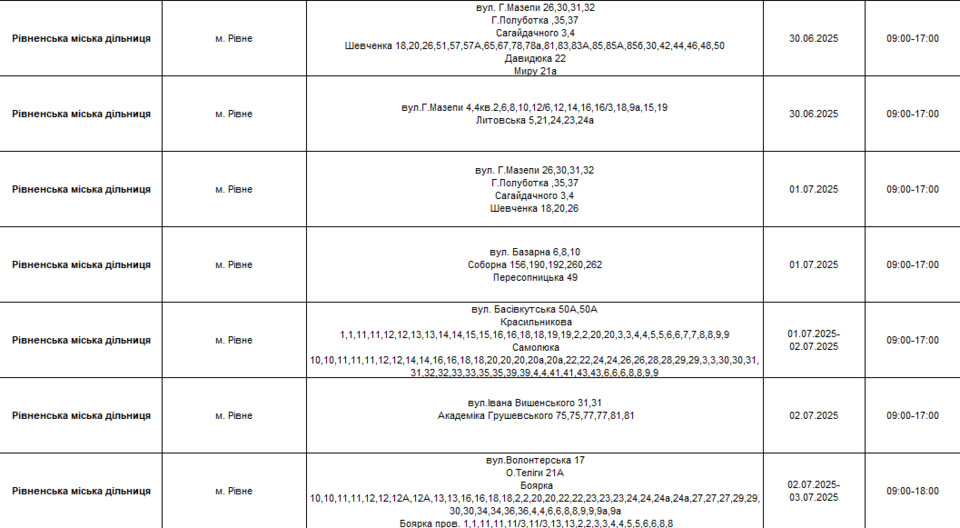 Світла не буде на понад 20 вулицях Рівного (ПЕРЕЛІК)