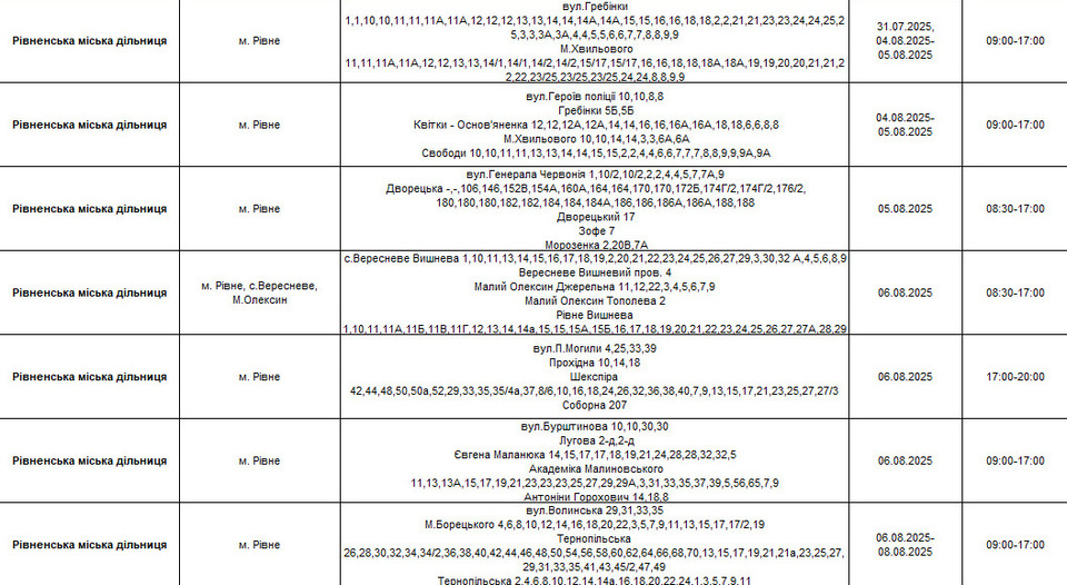 У зв’язку з плановими ремонтними роботами буде відсутнє електропостачання на частині вулиць Рівного. Світла не буде на таких вулицях: