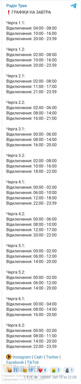 УВАГА! Це попередньо запланований графік. Він може змінюватися залежно від коригування доведених лімітів.
