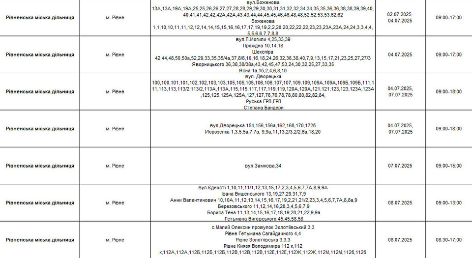 Повний графік планових ремонтних робіт можна побачити на сайті Рівнеобленерго у розділі «Споживачам».