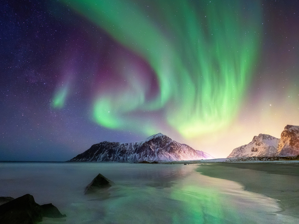 Ідеальне поєднання - гострі вершини, глибокі фіорди і мінімальне світлове забруднення. Найкращий сезон - з вересня по березень.