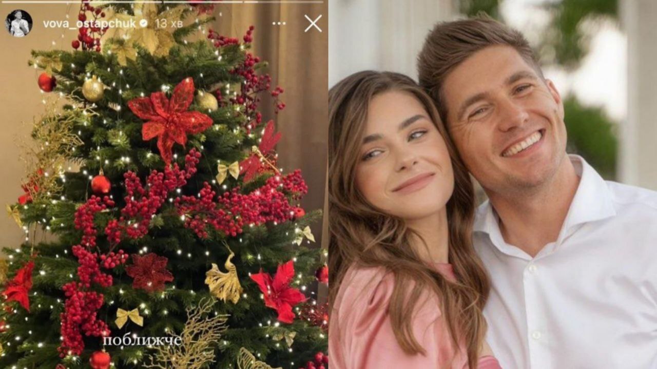 Телеведучий та його дружина Катерина, яка нещодавно народила сина, поділилася, що спочатку планувала оформити ялинку в трендовому стилі з великим бантом. Та зрештою, відмовилася від цієї ідеї. Катерина обрала для ялинки квіти та метелики в золотисто-червоній палітрі.