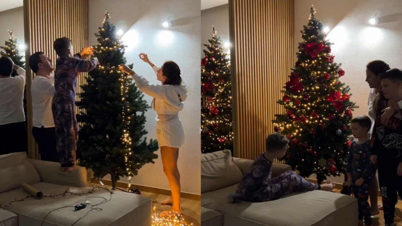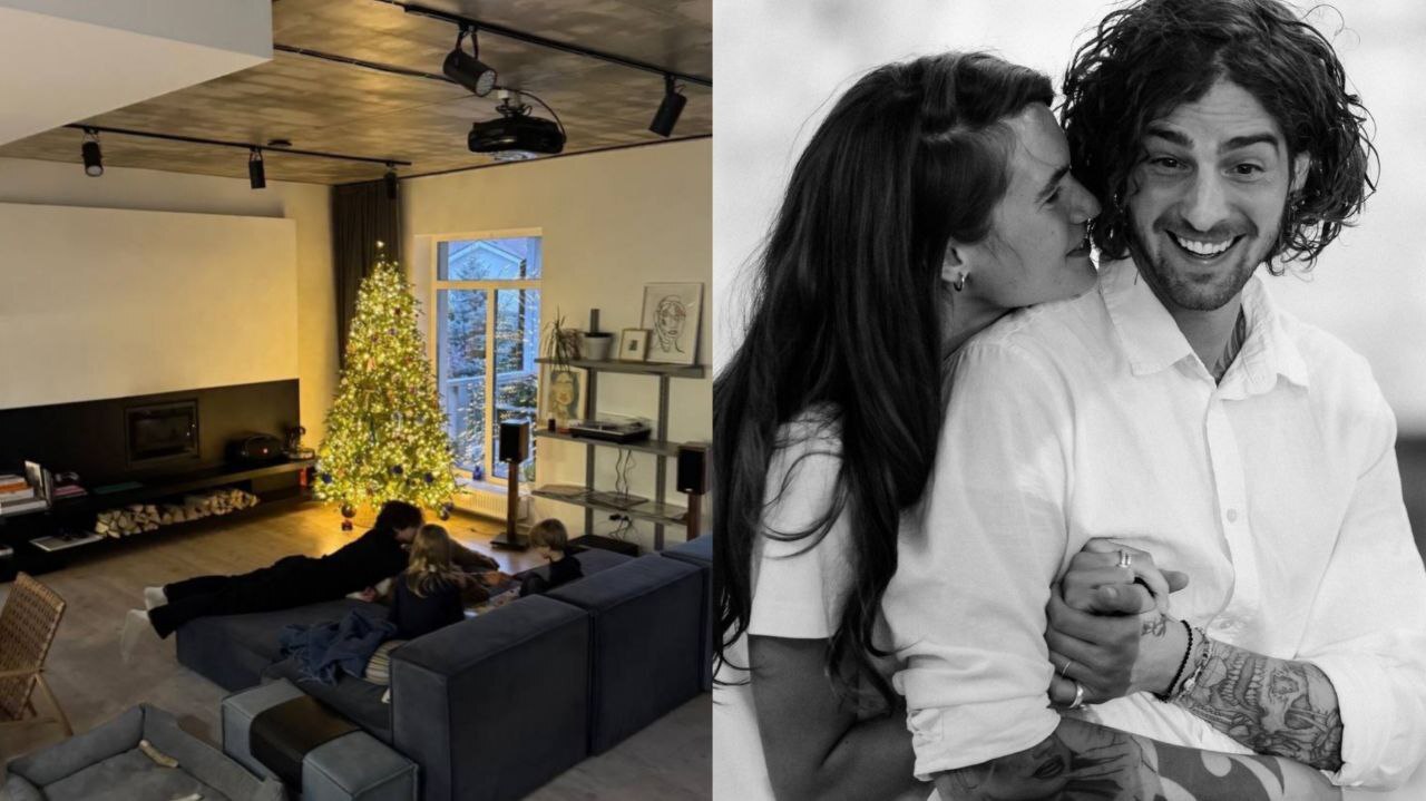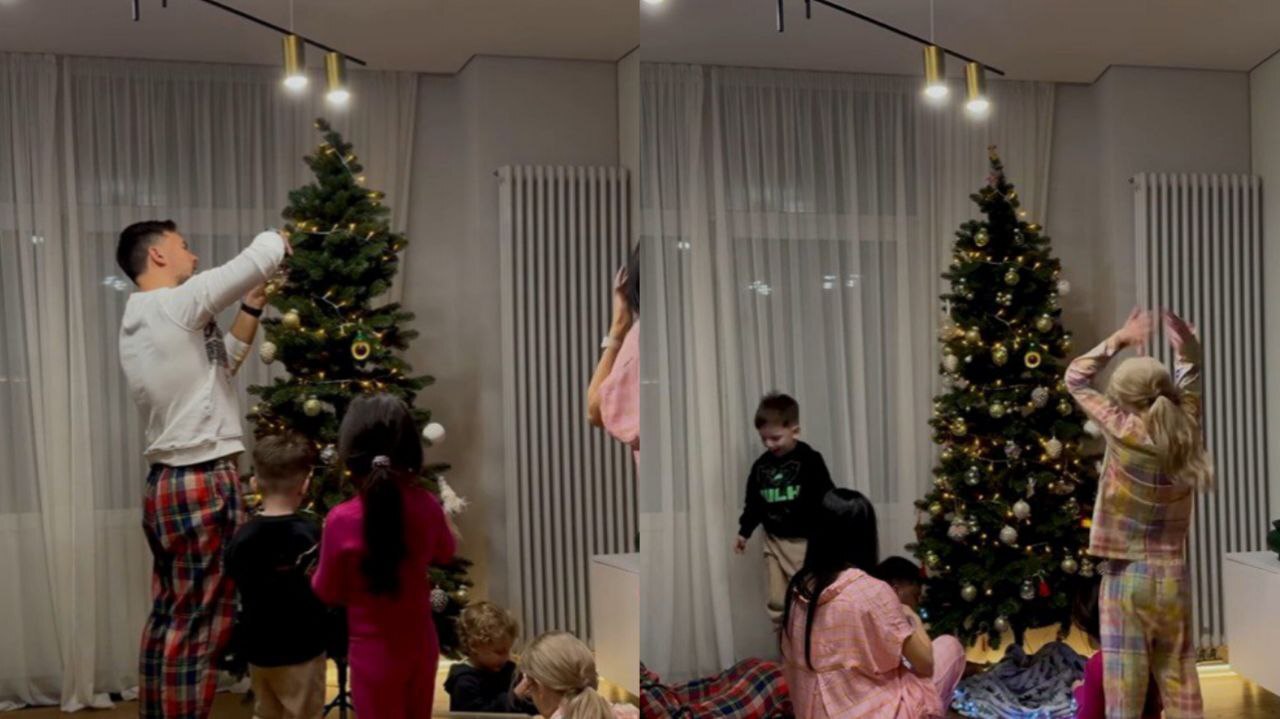 Співак Володимир Дантес та його кохана, підприємиця Даша Кацуріна, разом із дітьми Олександрою та Іваном створили святковий декор для новорічної ялинки. Серед прикрас можна побачити гриби та кулі.
