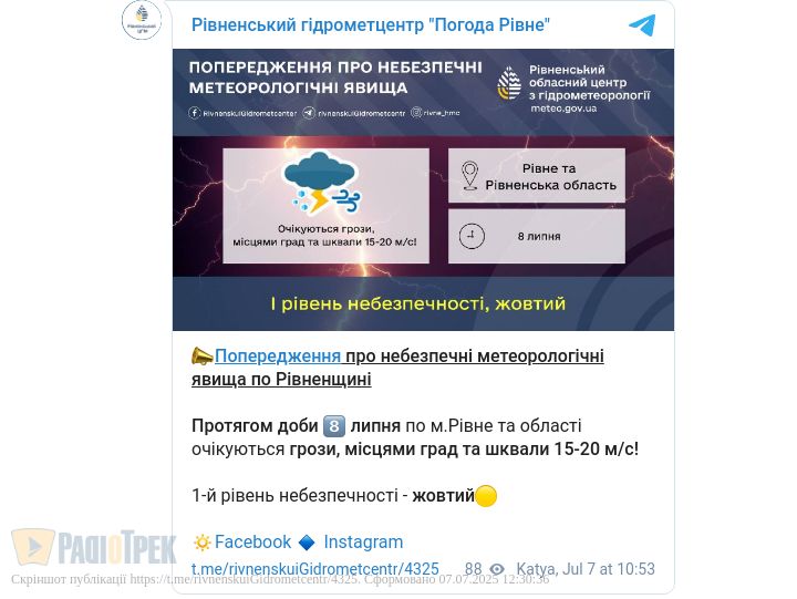 Це І рівень небезпеки, «жовтий», – повідомили у Рівненському гідрометцентрі.