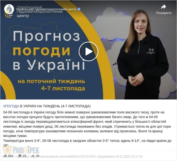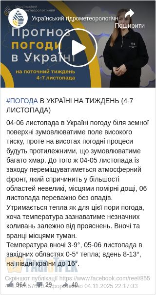 Завтра, 6 листопада, в Україні буде переважно без опадів.