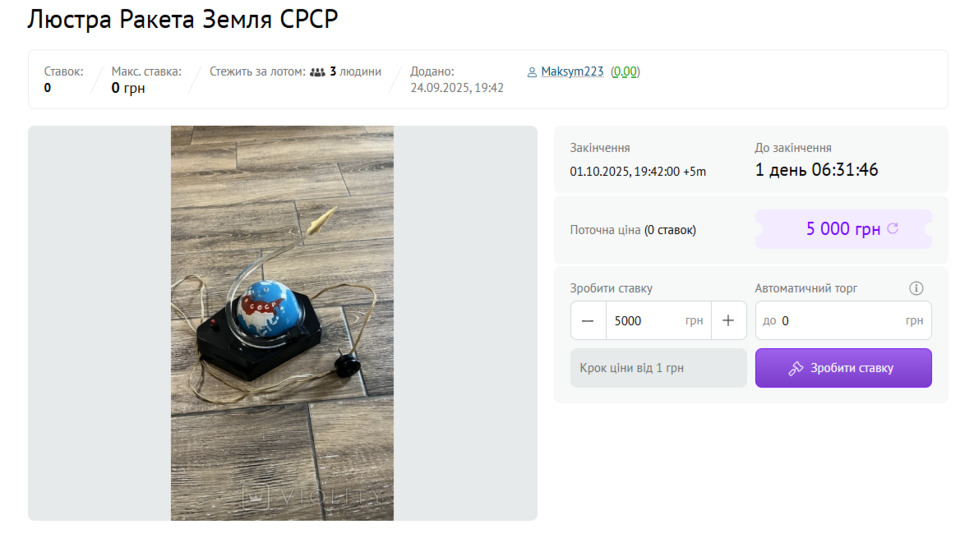 Оголошення також розміщене на сайті колекціонерів Violity, де стартова ціна лоту — 5000 грн.