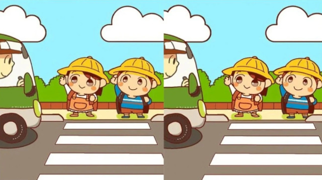 На перший погляд, обидва зображення з дітьми, які чекають на шкільний автобус, виглядають абсолютно однаково. Втім, це лише ілюзія.