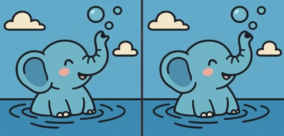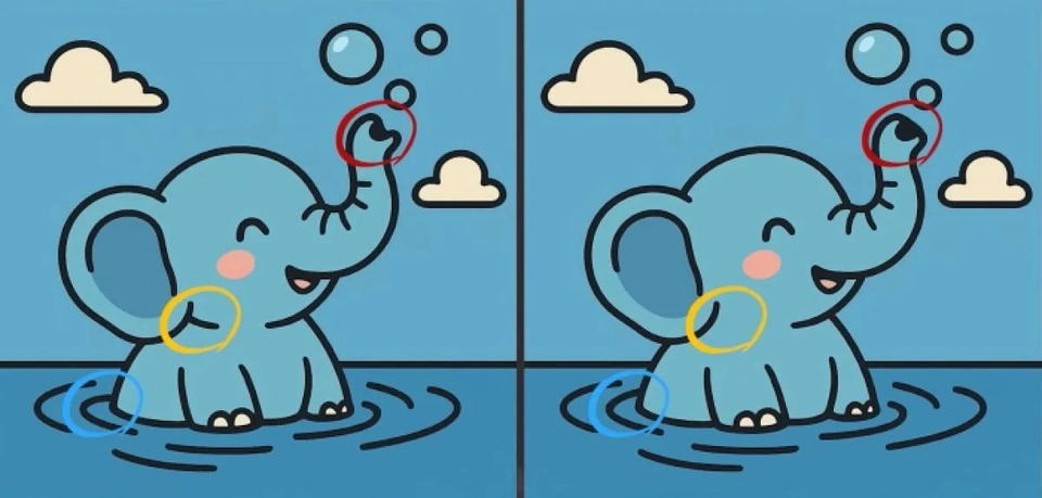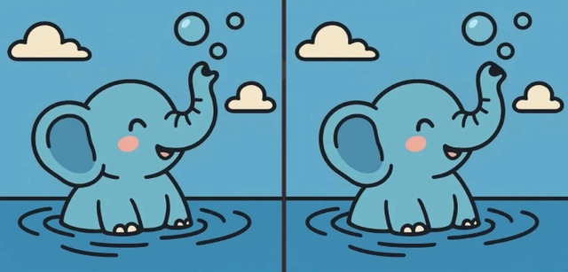 Головоломки у форматі «знайди відмінності» чудово тренують концентрацію, пам’ять і швидкість реакції. Перед вами – дві картинки зі слоном, який бавиться у воді.