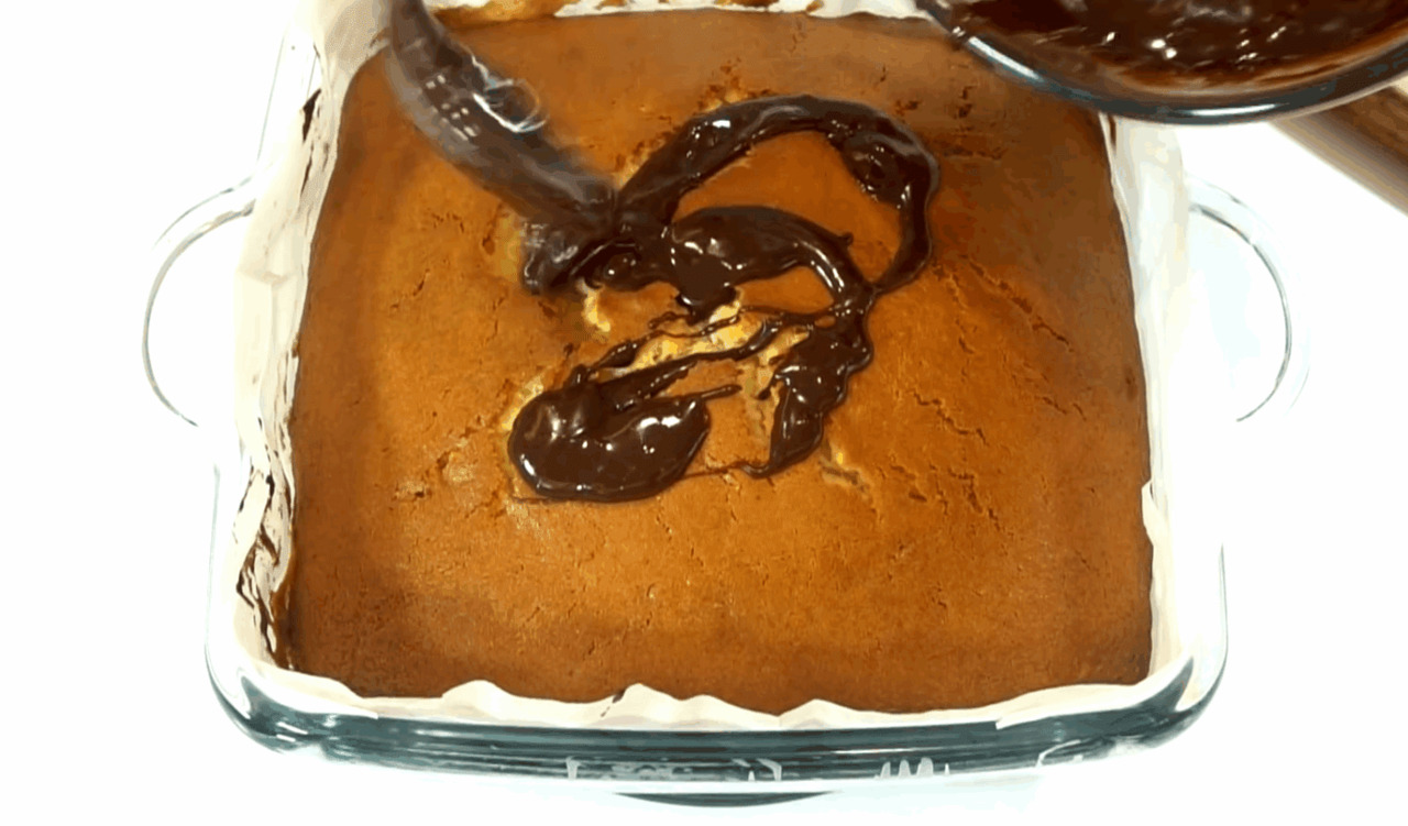 Отриманою глазурю поливаємо готовий кекс. За бажанням зверху можна присипати кокосовою стружкою, або горішками.