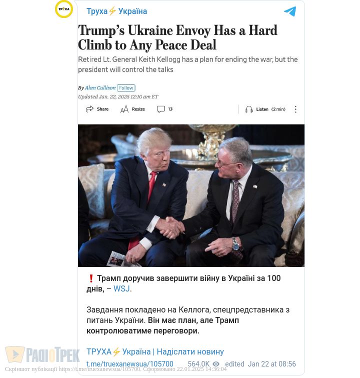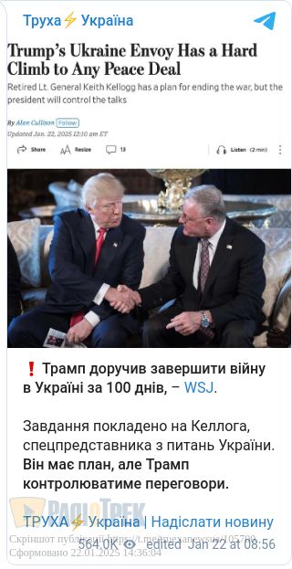 Прикметно, що одночасно Трамп озвучив доручення – досягти завершення війни в Україні упродовж 100 днів.