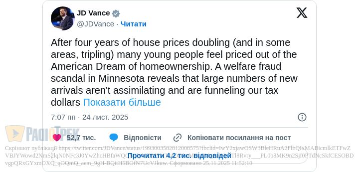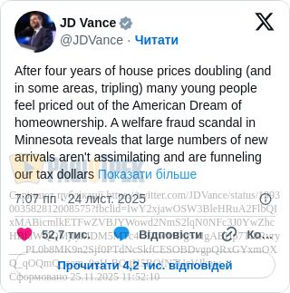 Джей Ді Венс поскаржився, що республіканців, за його враженням, більше турбує Україна, ніж внутрішні проблеми США.
