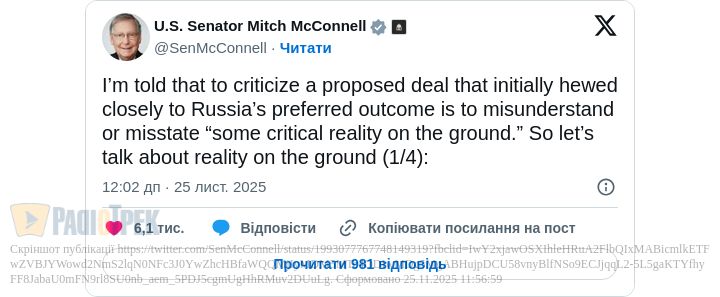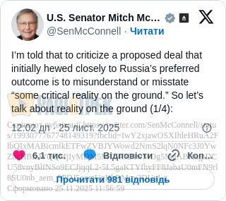 Макконнелл, який у 2027 вийде на пенсію, не залишив це без відповіді. Він згадав попередній коментар Венса – про те, що критики угоди не розуміють реалій на місці.