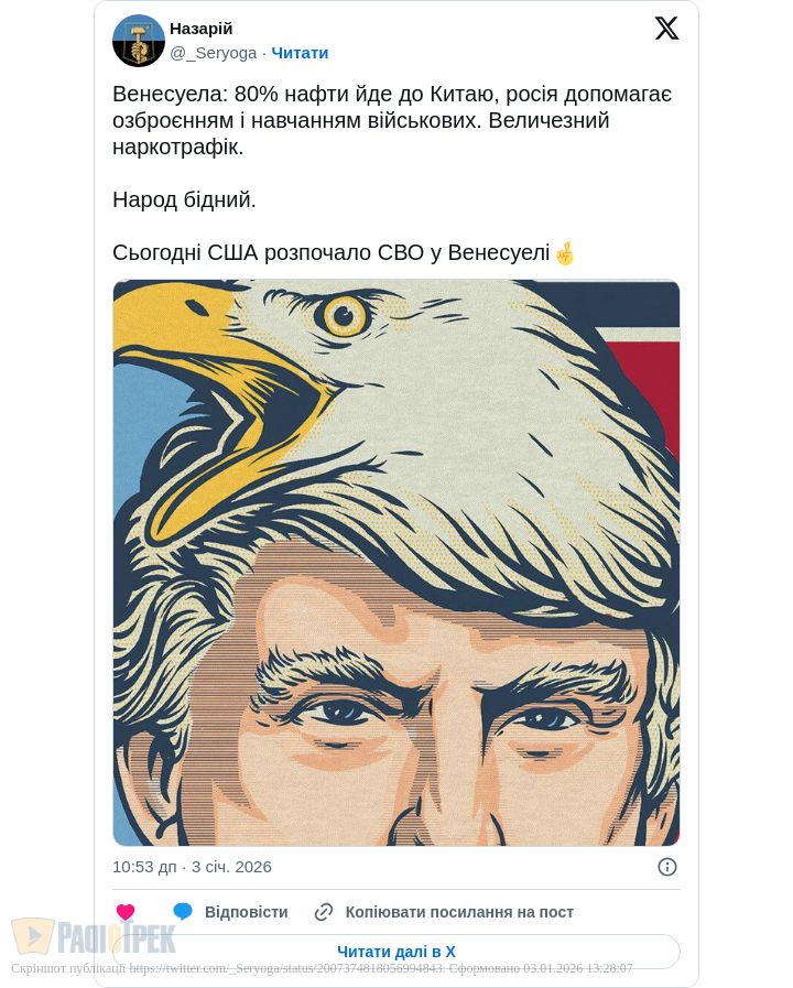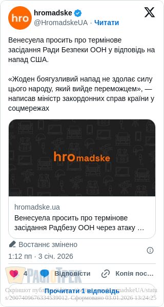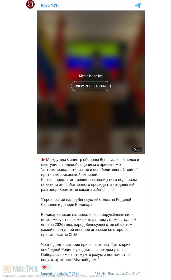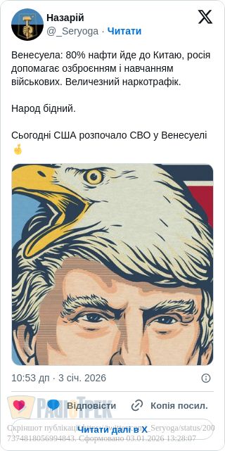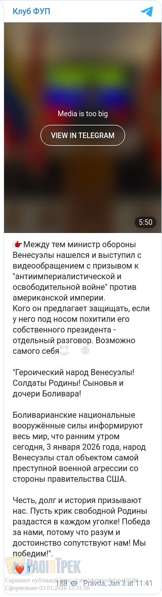 Ми вимагаємо від уряду президента Дональда Трампа негайно надати докази життя президента Мадуро та першої леді».