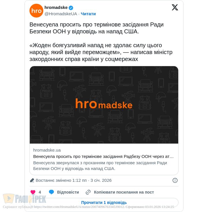 Анонсована прес-конференція має початися о 18.00 за нашим часом. Дональд Трамп, очевидно, доповість про деталі самої спецоперації та її подальше розгортання, чи… Завершення.