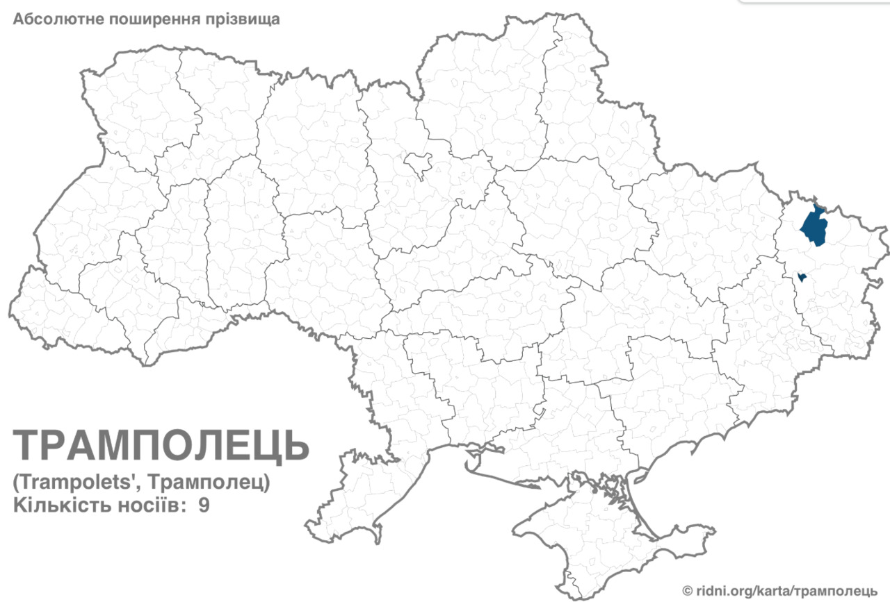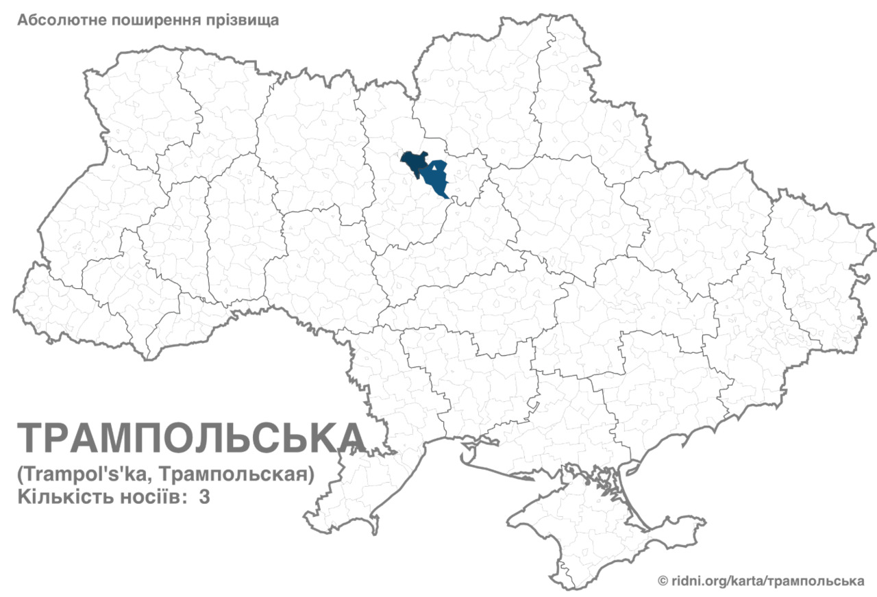 - Також є Трампольська і Трампольський (по 3 особи, у центрі), рідкісні Трампус (1 особа, південь) та Трампотова (1 особа, захід).