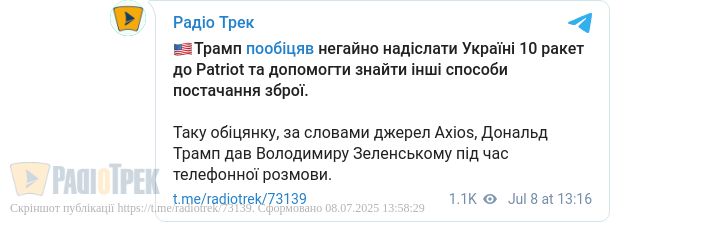 При цьому Дональд Трамп запевнив Володимира Зеленського, що не віддавав наказу заморожувати поставки зброї.