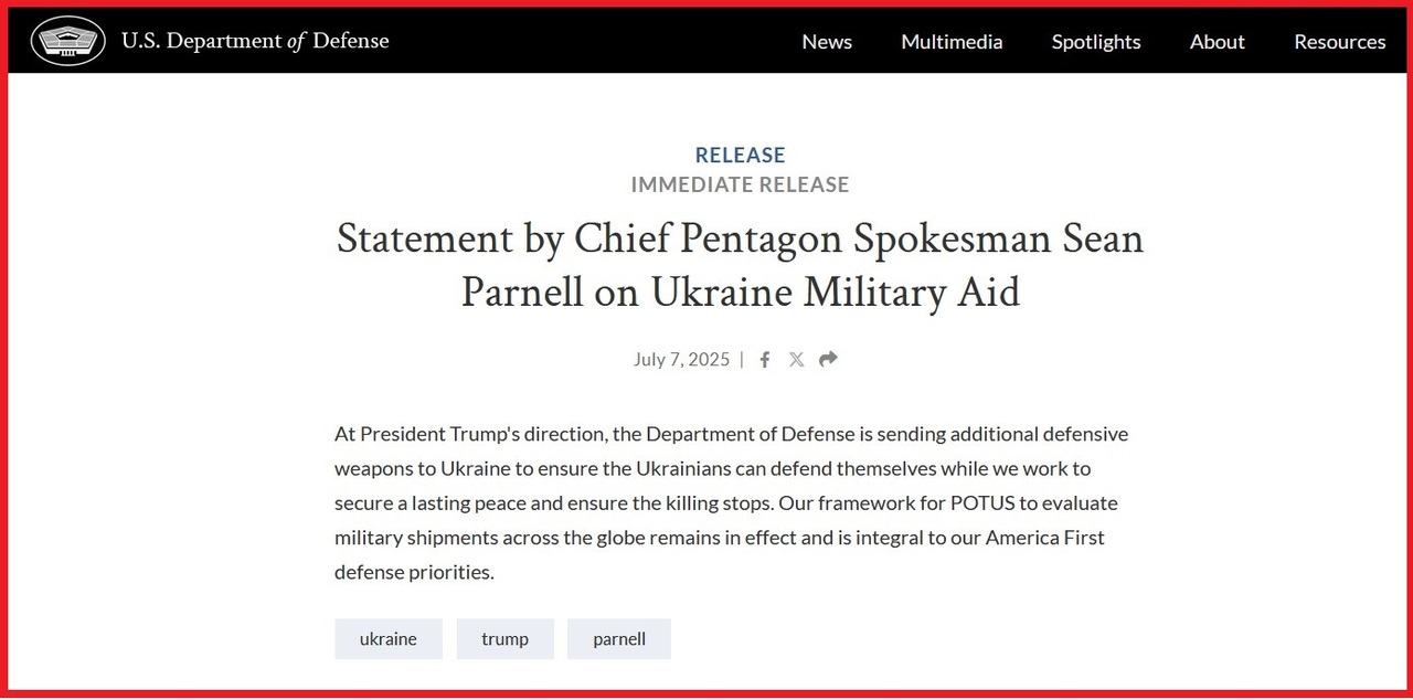 «За вказівкою президента Трампа, Міністерство оборони надсилає додаткову оборонну зброю в Україну, щоб українці могли захистити себе, поки ми працюємо над забезпеченням тривалого миру і зупинкою вбивств», - сказано у спеціальному прес-релізі Пентагону