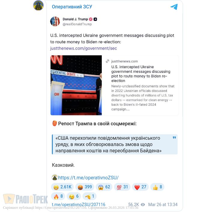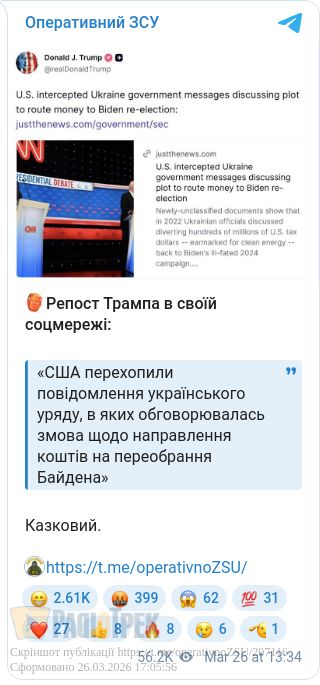Мовляв, офіційний Київ проводив якісь закулісні грошові оборудки в 2022р., аби допомогти Байдену обратися президентом.