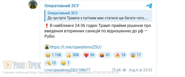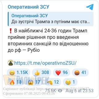 В найближчі 24-36 годин Трамп прийме рішення про введення вторинних санкцій по відношенню до РФ — Рубіо
