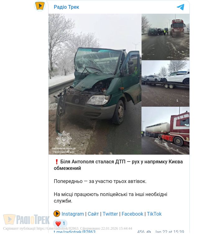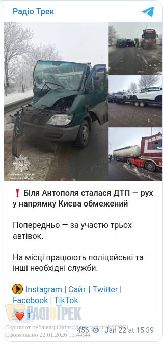 ДТП сталася Біля Антополя на Рівненщині. Рух у напрямку Києва обмежений.