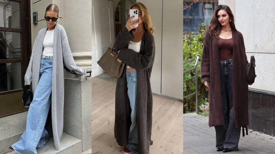 Такий кардиган виглядає трохи як легке пальто. Його зручно носити у приміщенні, коли хочеться додаткового тепла. Стилісти рекомендують вдягати його з високими чоботами та великою сумкою — виходить стильний зимовий образ.
