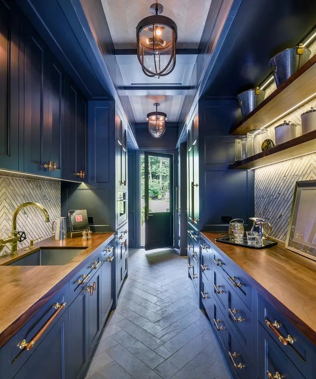 Окрему комору зазвичай робили у великих будинках, адже якщо житло маленьке, – куточок для зберігання продуктів можна організувати в межах кухні. Дизайнерка Ніна Карбоне показала результат своєї нещодавньої роботи – стильної синьої комори в новобудові.