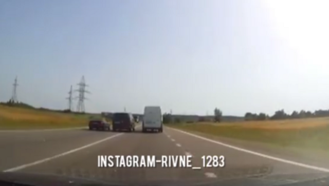 Так сталося через те, що один з автомобілів вирішив обігнати бус, який їхав попереду, слідом за ним на обгін пішов ще один легковик. І в якийсь момент три транспортні засоби їхали у три смуги.