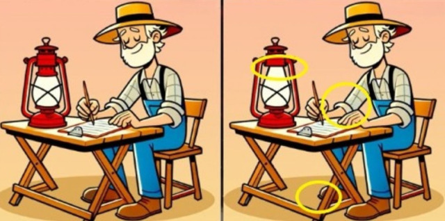 На картинках вище зобразили літнього чоловіка, який пише на папері. На перший погляд, картинки однакові, втім насправді там заховали три відмінності.