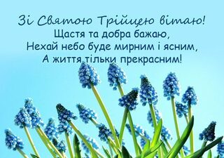 Вітаю з Трійцею. Бажаю від Сина - добра, від Отця - виконання молитов, від Святого Духа - знань. Нехай збудуться надії, міцніє родина, а в душі цвіте вічне літо!