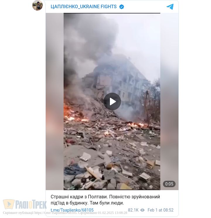 - Ворог вночі атакував Миргородський та Лубенський райони Полтавщини двома балістичними та трьома крилатими ракетами.