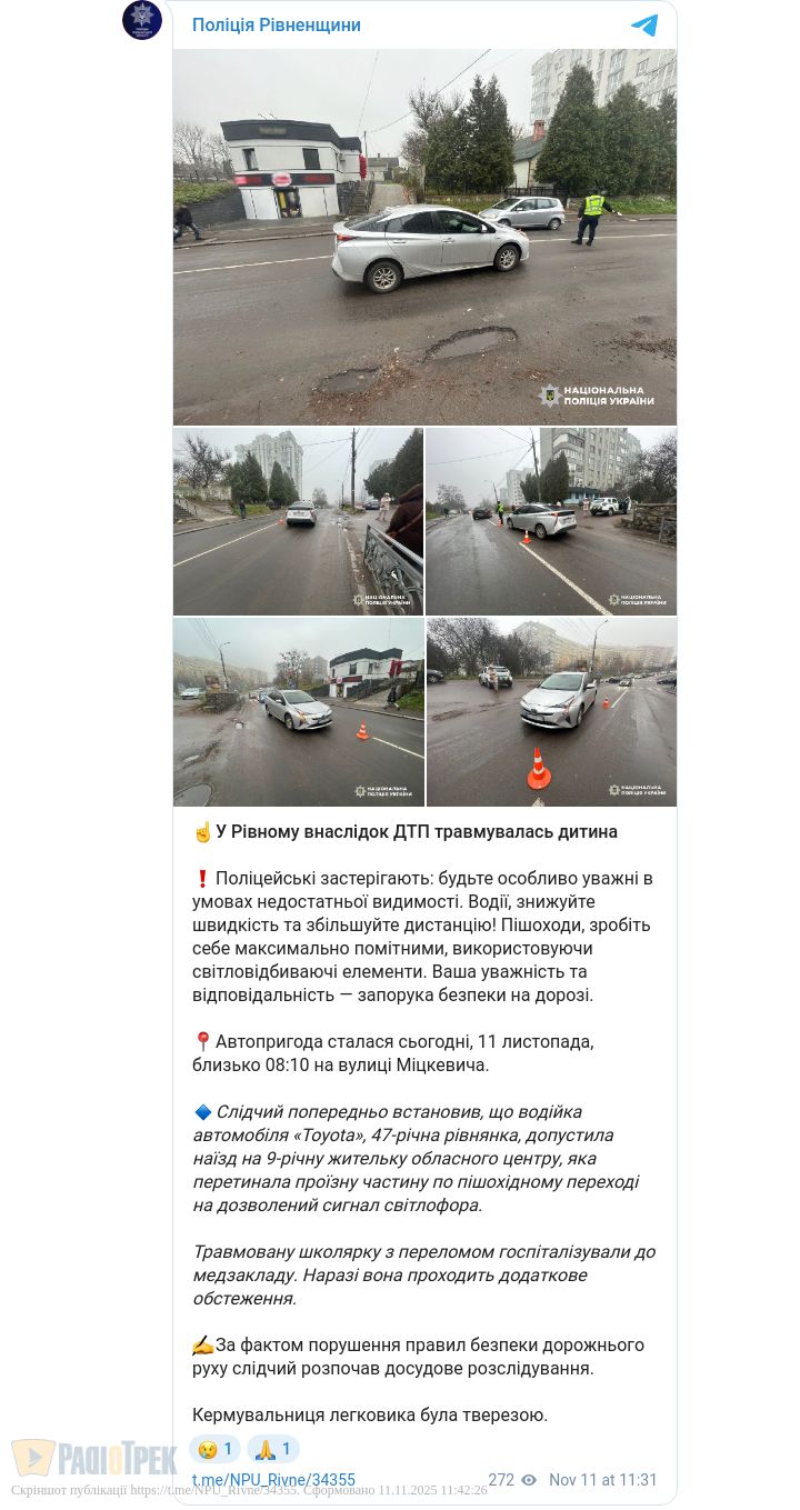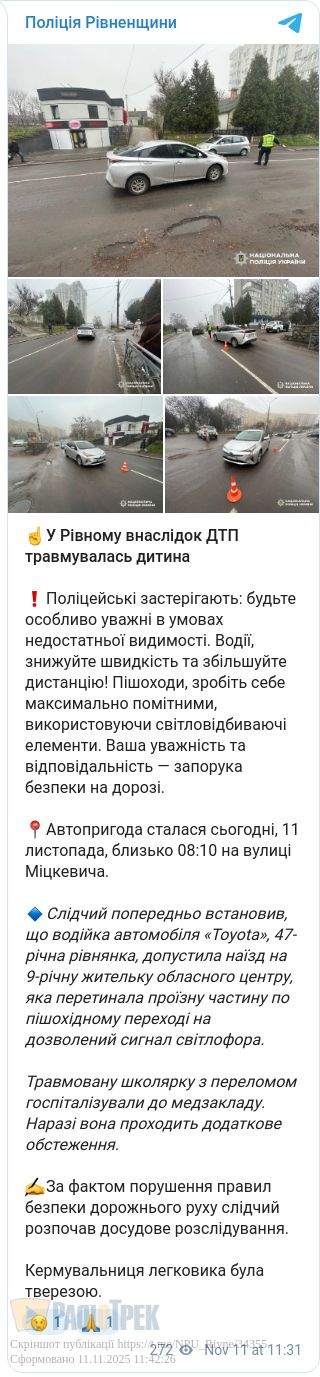 Туман чи неуважність: у Рівному під колеса авто потрапила 9-річна дівчинка, яка йшла по зебрі (ФОТО)