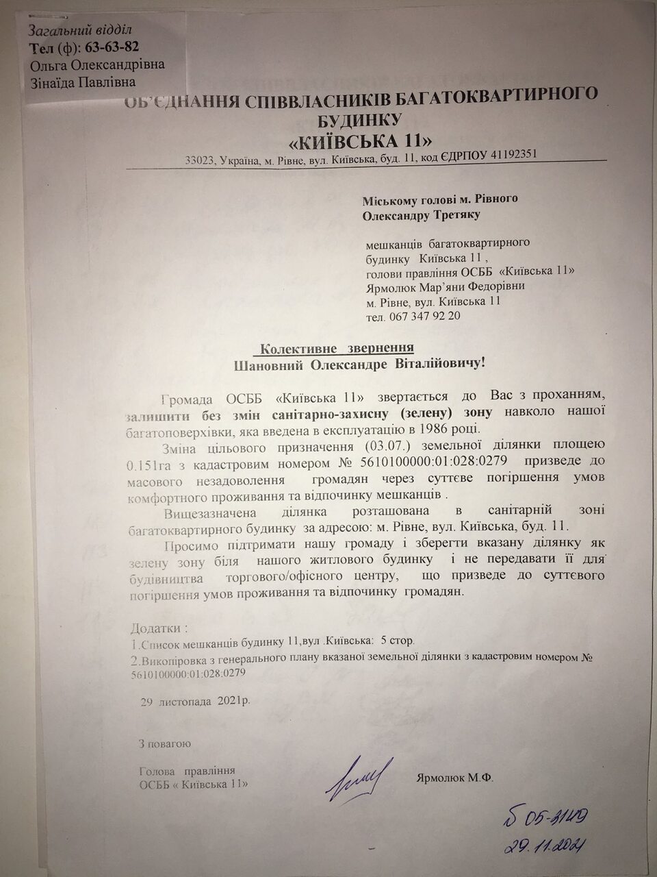 Головне ж, що в людей хочуть відібрати окрім заасфальтованої території, де колись були «черепашки», ще й додаткову смугу зелених насаджень шириною 4 м.