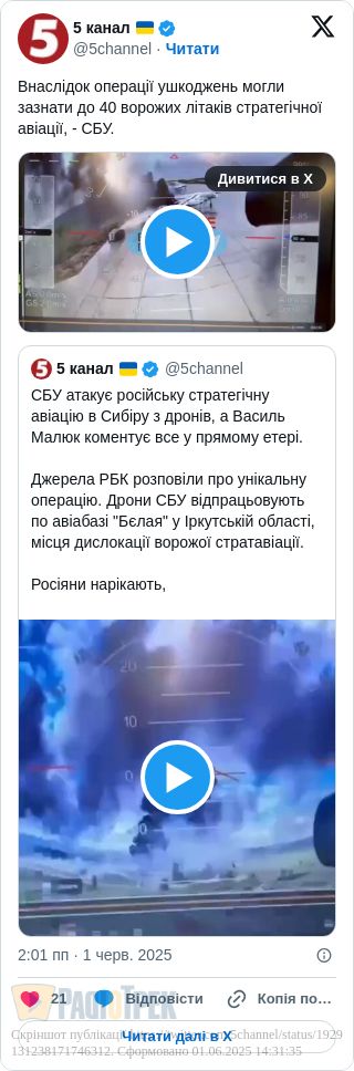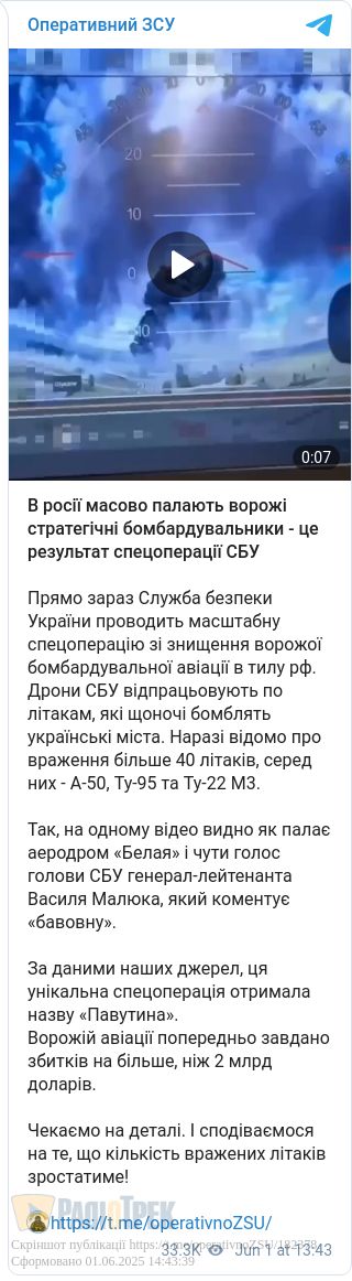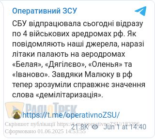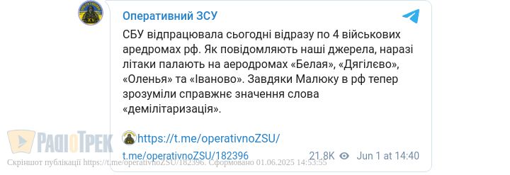 На тлі негативних і часто трагічних повідомлень – успіхи наших Сил Оборони сприймаються з особливим натхненням. Особливо ж настільки значимі, як удар по летовищу стратегічної авіації РФ.