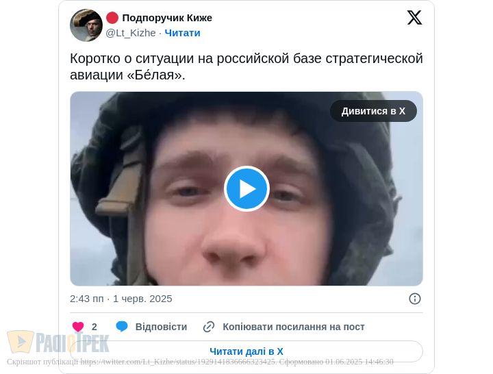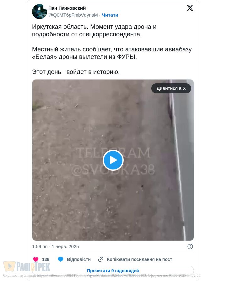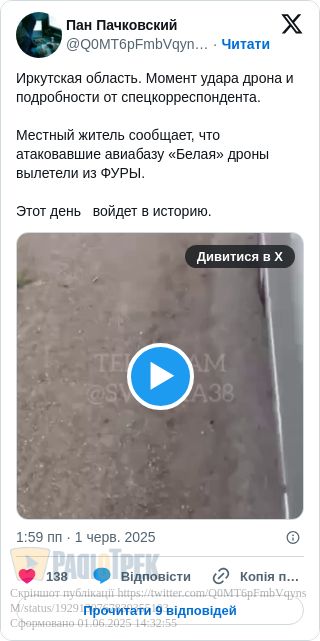 При тому, що все це аж десь в Іркутській області РФ (летовище «Белая»).