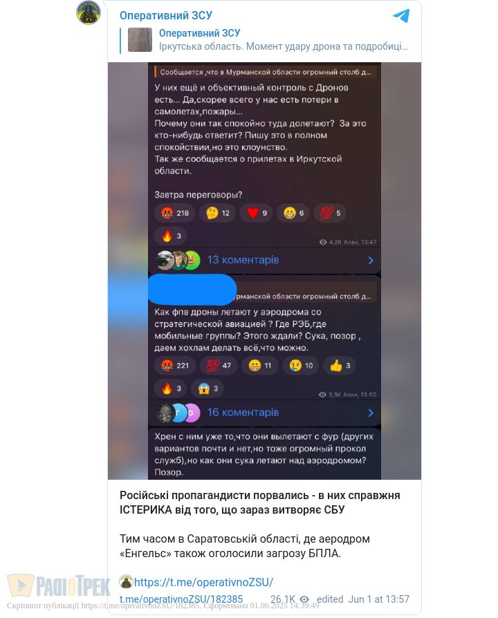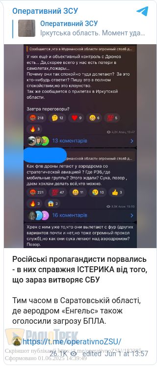 Також говорять і про удар по летовищам «Енгельс» та «Оленья»