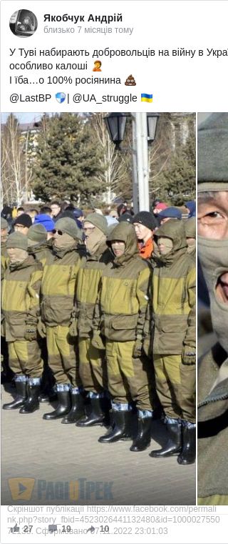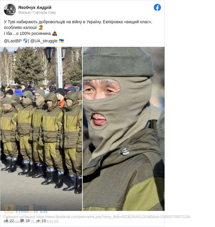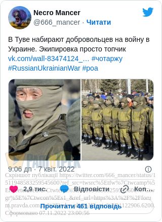 - Там ещё обсуждение интересное. Всё на тувинском, но Гугл отлично переводит. Местные подозревают что резиновые сапоги не совсем то что нужно для войны и говорят что будут к Кадырову обращаться, он точно даст денег на нормальную снарягу.